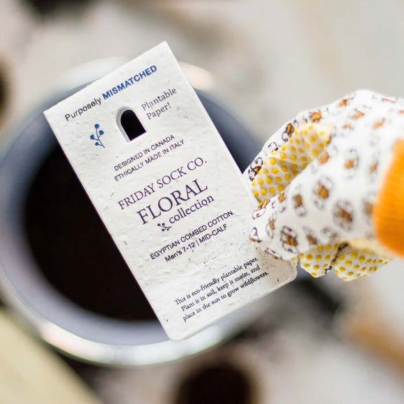 Our new floral collection features eco-friendly plantable paper hang tags! Plant it in soil, keep it moist, and place in the sun to grow wildflowers.